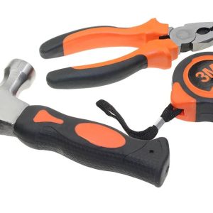 Con un total de 8 herramientas, este comodo maletin te permite clasificar y acceder fácilmente a las herramientas basicas para esos trabajos electricos emergentes en la casa o taller, ademas asegura que tus herramientas estén protegidas en todo momento. El kit incluye: Una cinta aislante, un cuter grande, un provador de fase digital, un destronillador plano, un destornillador estrella, un alicate, un martillo compacto y un flexometro de 3M.